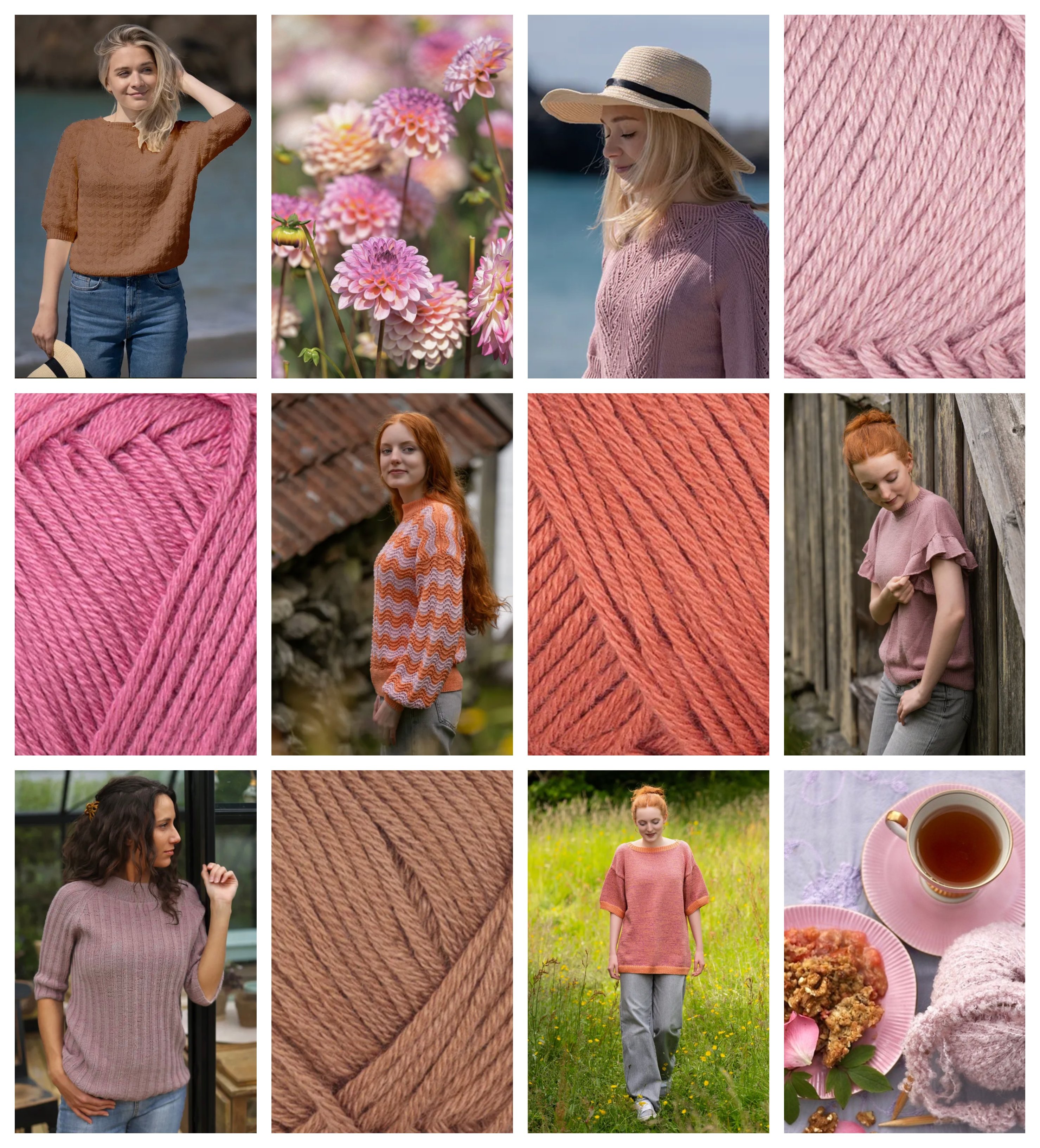 OBS: Färgerna på garnet och plaggen i mönstren matchar inte nödvändigtvis exakt – Bilderna är till för inspiration. Du kan fritt mixa, matcha och experimentera med din egen stil. Garnet som ingår räcker inte till att sticka alla sex projekten, men ger dig valfrihet: Välj dina favoriter, använd eget restgarn eller byt färger efter egen smak.